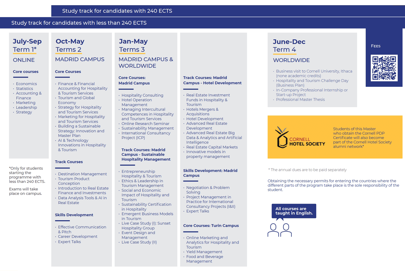 - 2 Specialization tracks (a elegir): Sustainable Hospitality Management or Hotel Development